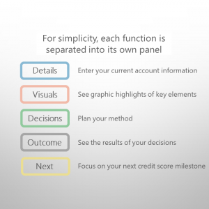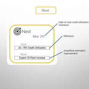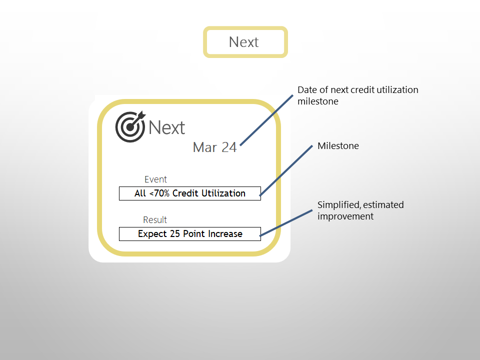 • New with version 1.1- Complete Milestone Sheet. Chronological listing of all accounts as they pass all credit utilization thresholds (up to 55 events possible), for maximizing positive reinforcement and using your subconscious to help keep you moving toward the finish line.