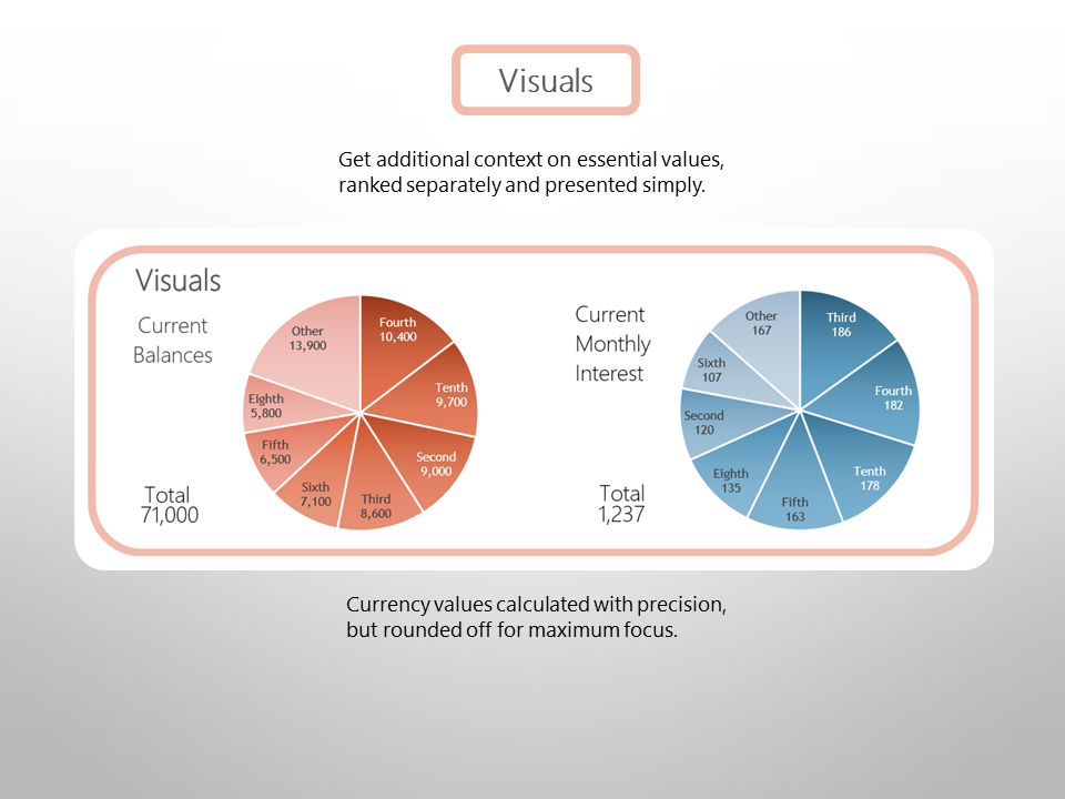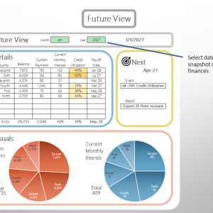 • Future View, to see your financial situation at any month / year in the future, until all balances are paid.